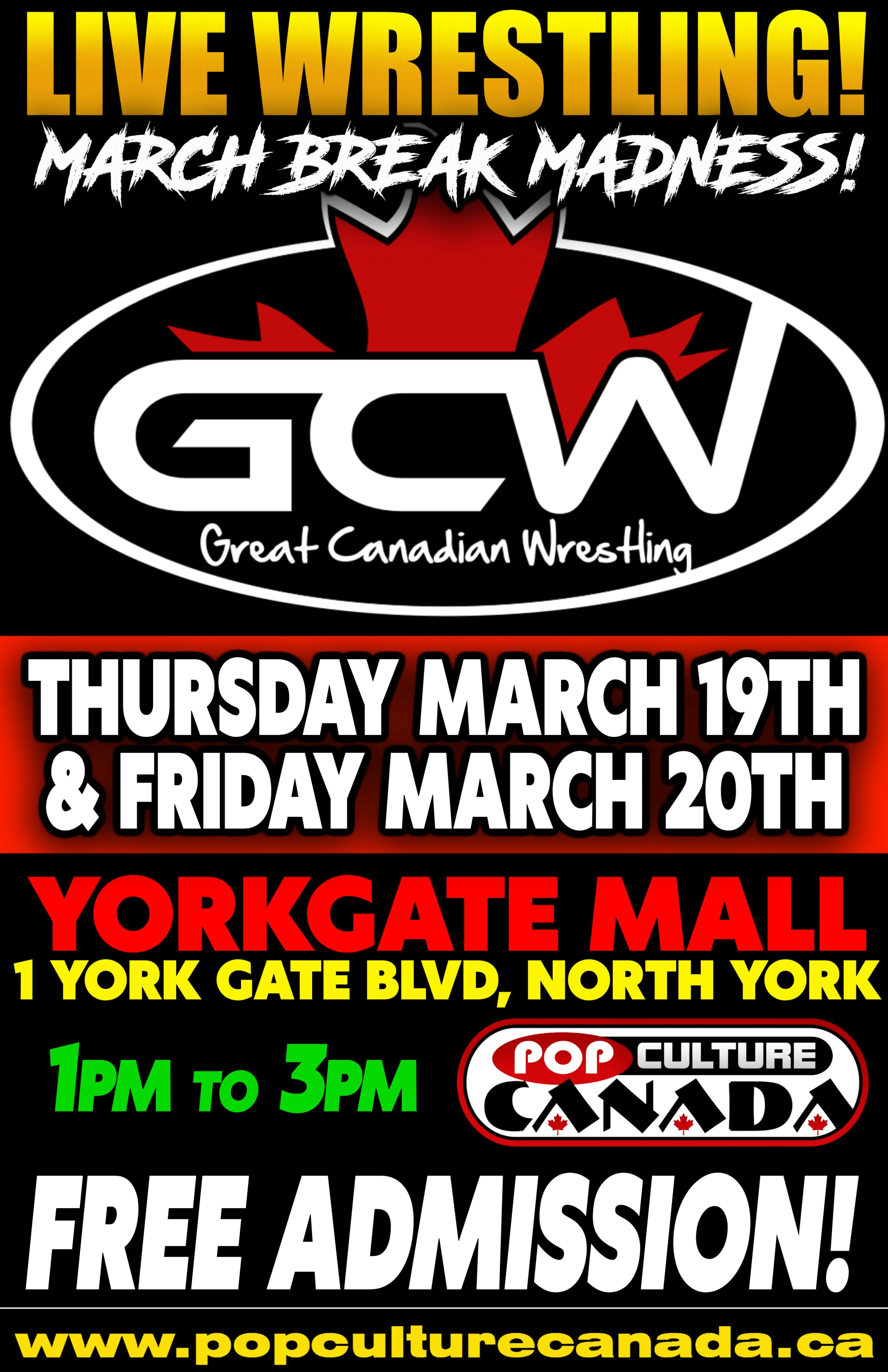 Pop Culture Canada is the premier organizer of specialty events. Autograph Signings! Comic conventions! Family friendly Pro Wrestling events and Cosplay wrestling! Video game tournaments! Cosplayers! Celebrity Cars! Comics for classrooms!