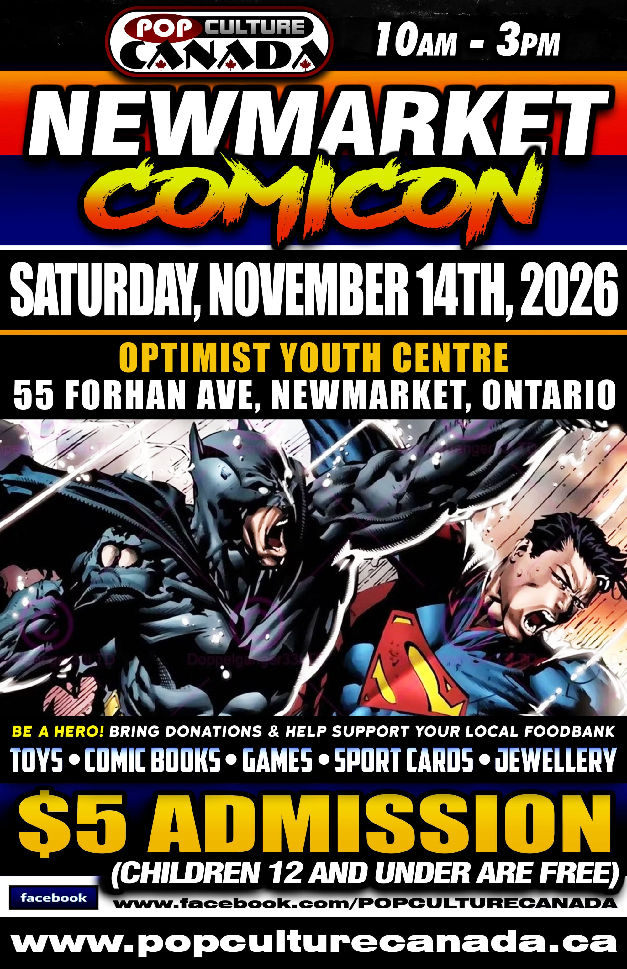 Pop Culture Canada currently organizes Charity Comicon events all over Ontario. These events benefit foodbanks all over this province. In 2018 we collected over 10,000 lbs of food and this year we are on our way toward 20,000 lbs!