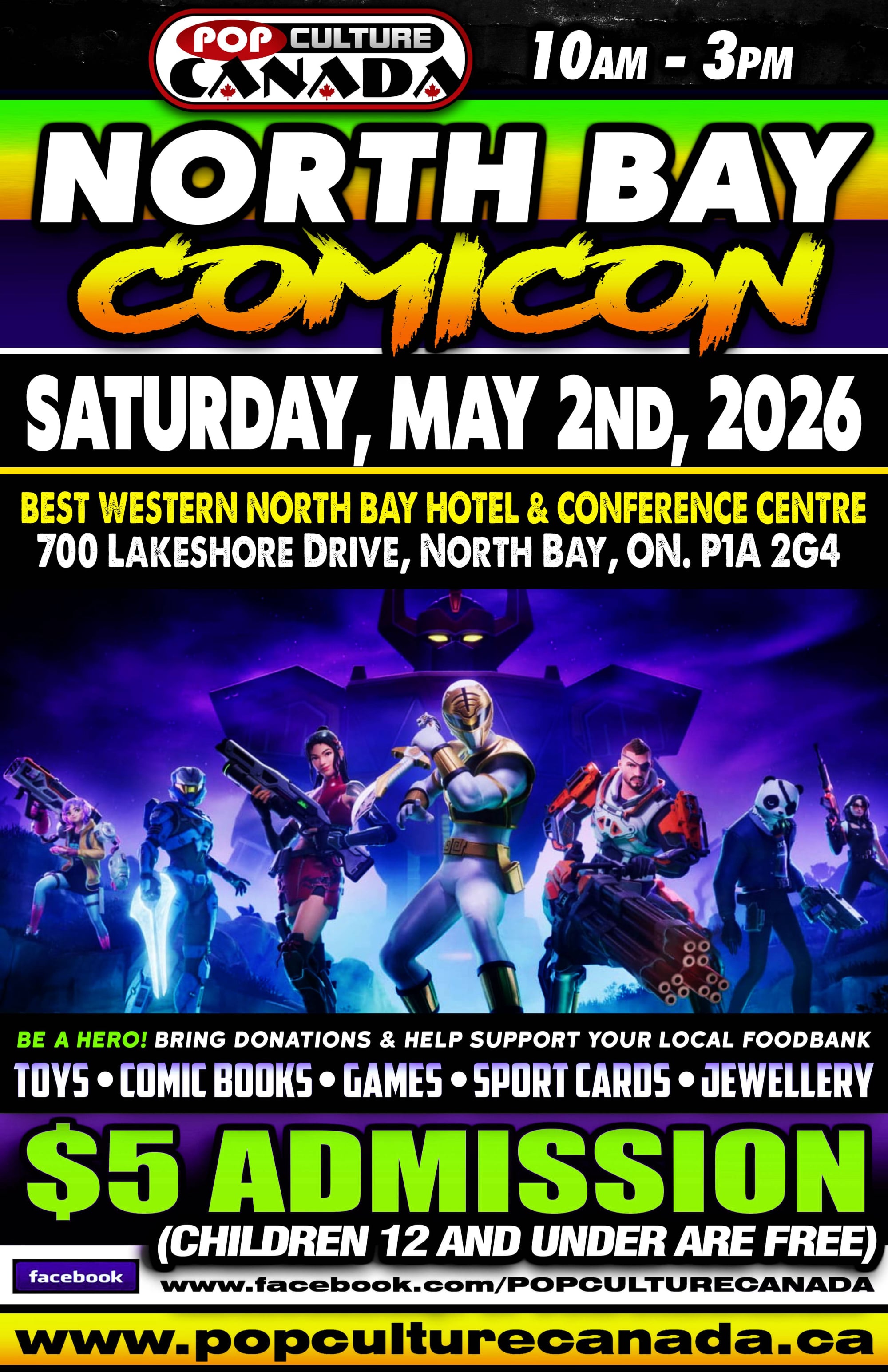 Pop Culture Canada currently organizes Charity Comicon events all over Ontario. These events benefit foodbanks all over this province. In 2018 we collected over 10,000 lbs of food and this year we are on our way toward 20,000lbs!